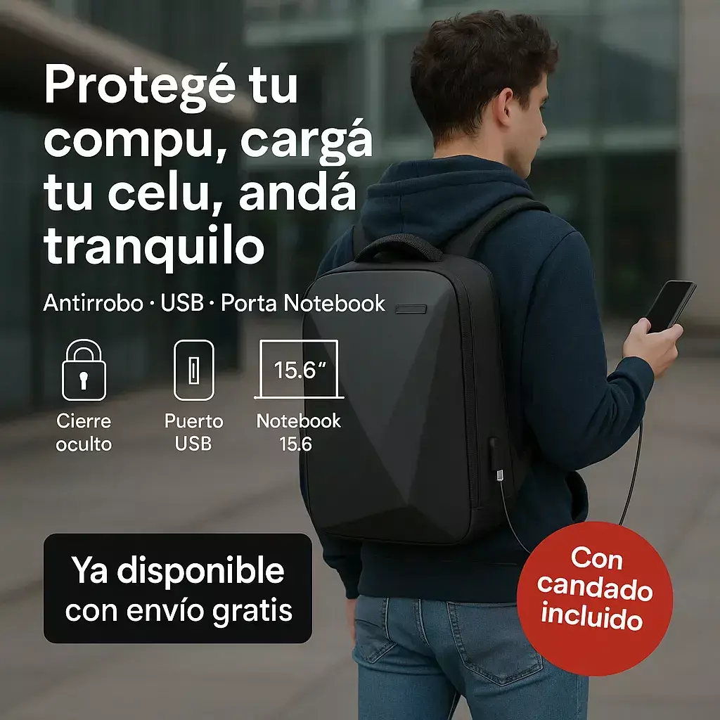 La Mochila EXO TechGuard X7 es la solución ideal para proteger tu notebook, tablet y demás dispositivos cuando vas de viaje, al trabajo, a la universidad o estás en movimiento. Su diseño antirrobo, con candado y cierre seguro, y el puerto USB externo para cargar tu celular la hacen perfecta para quien prioriza seguridad y funcionalidad.