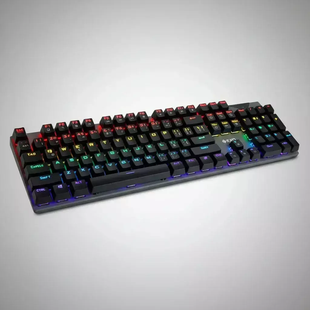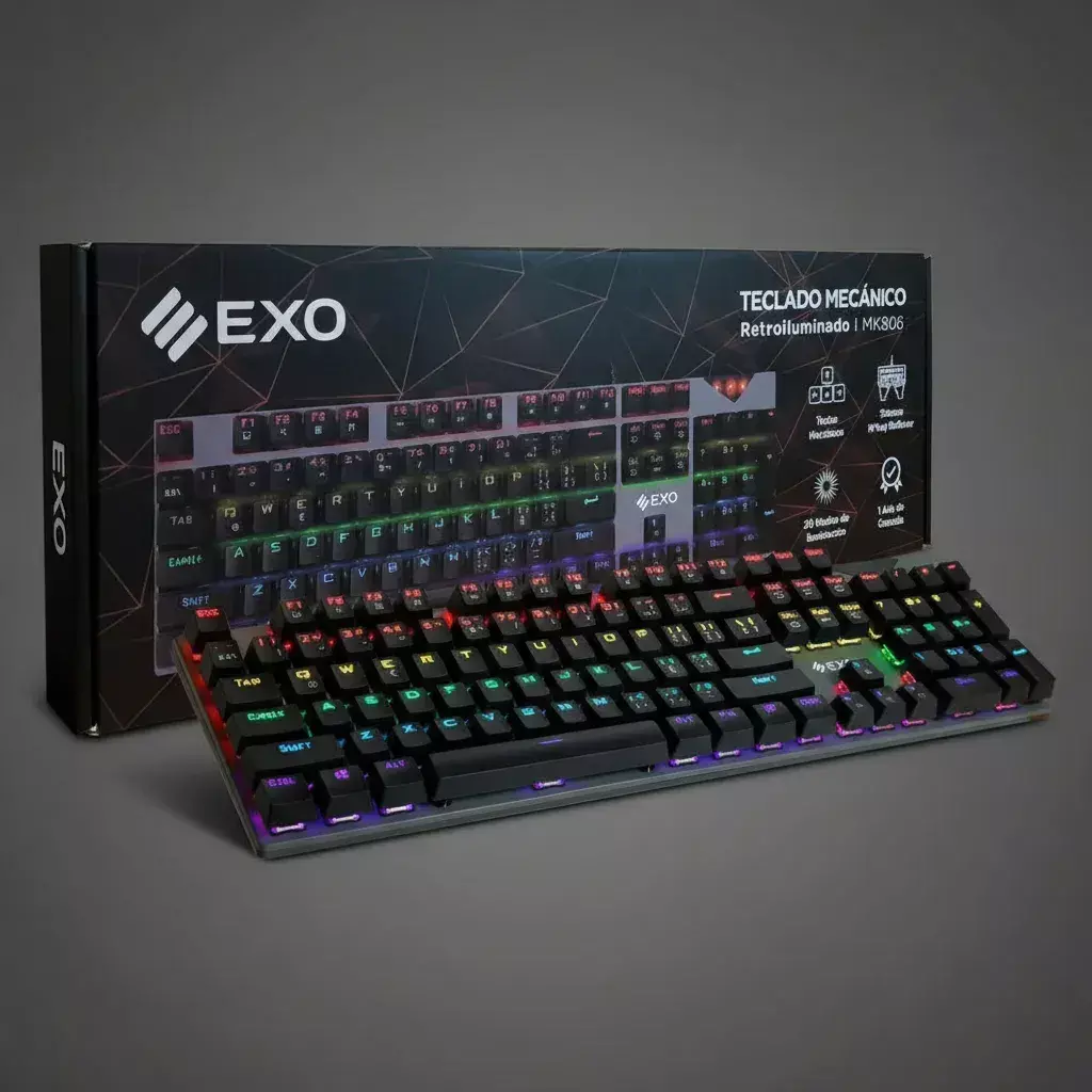 El Teclado Gamer EXO MK806 es la herramienta definitiva para quienes buscan precisión, velocidad y estilo en sus sesiones de juego o trabajo. Su diseño mecánico con anti-ghosting y panel metálico garantiza pulsaciones rápidas, reactivas y confiables. Con iluminación RGB personalizable y modos de luz dinámicos, podés adaptar tu setup al estilo que querés.